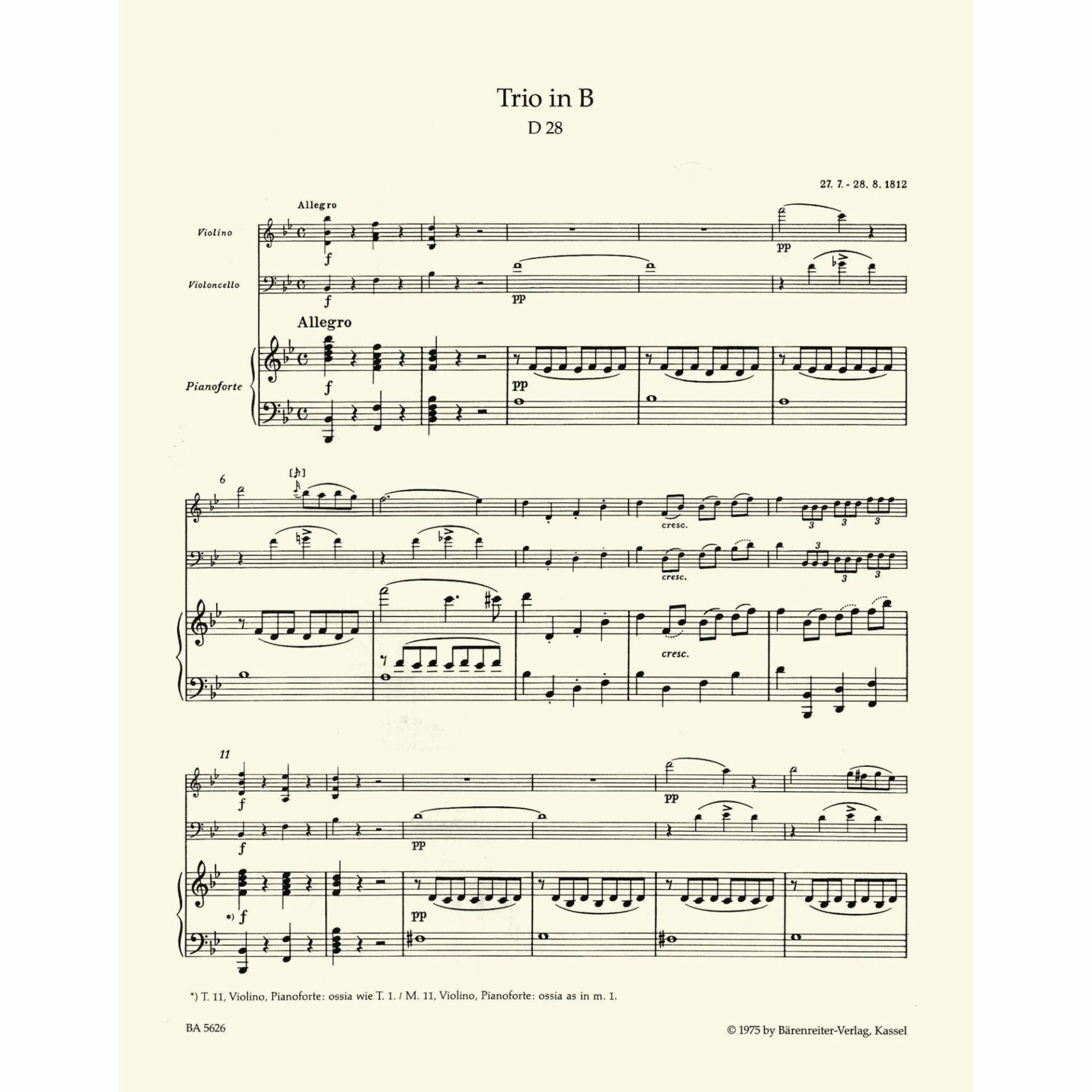 - Trio in B-flat Major, D. 28 “Sonatensatz”