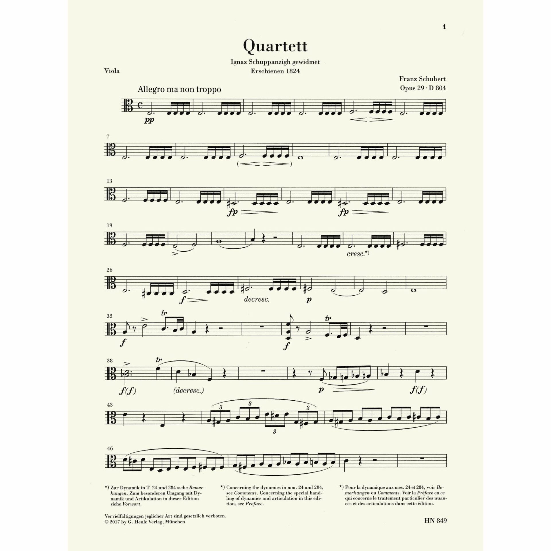 Title: String Quartet in A Minor, D. 804 “Rosamunde”