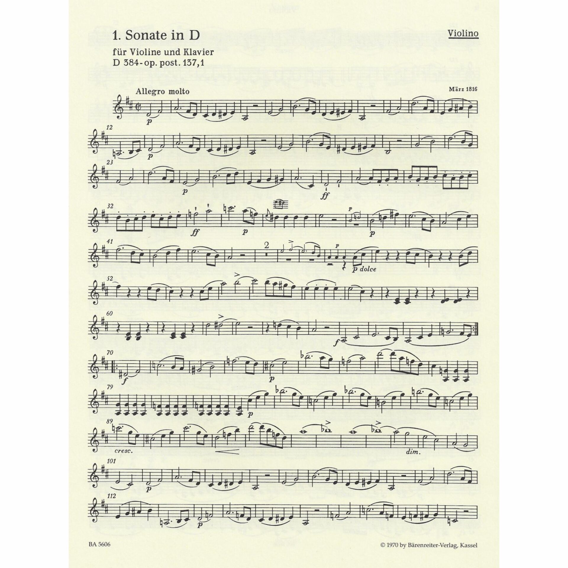 - Sonata in D Major, D. 384 (Op. post. 137, No. 1)