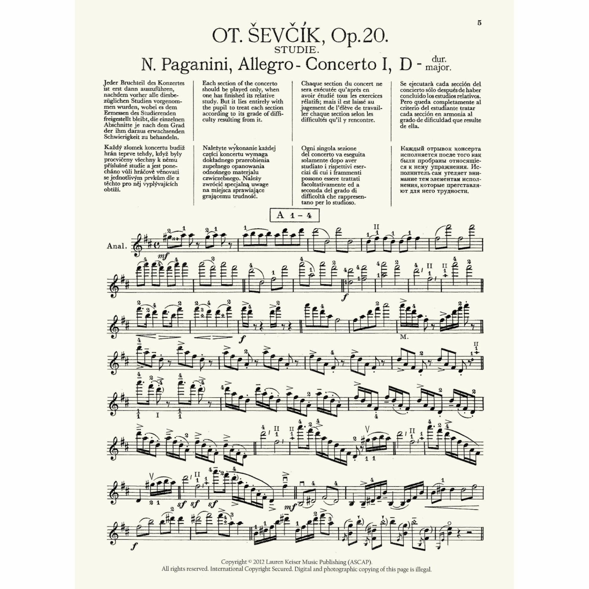Sevcik — Analytical Studies & Exercises, Op. 20 (after Paganini Concerto No. 1)