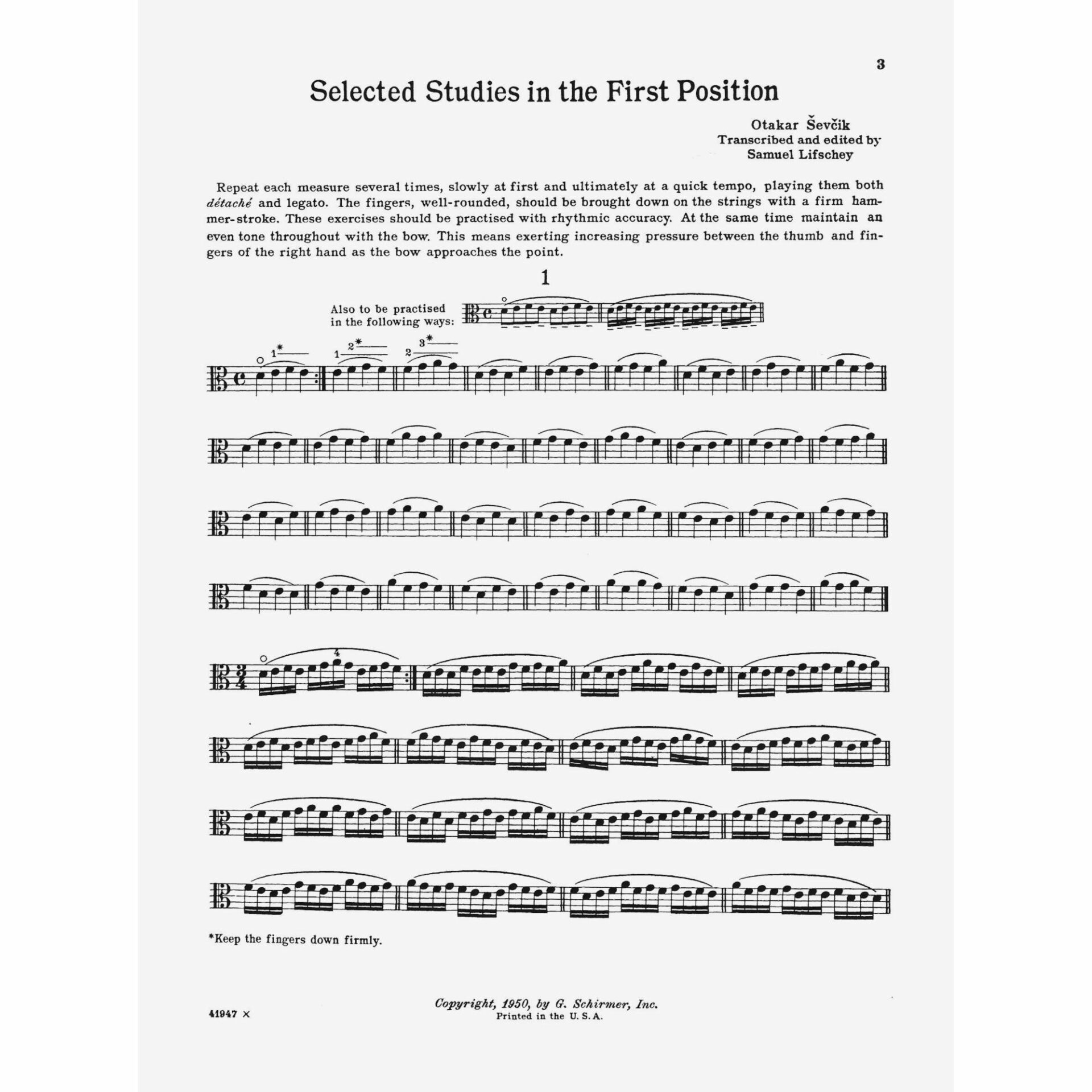 Sevcik — Selected Studies in the First Position for Viola