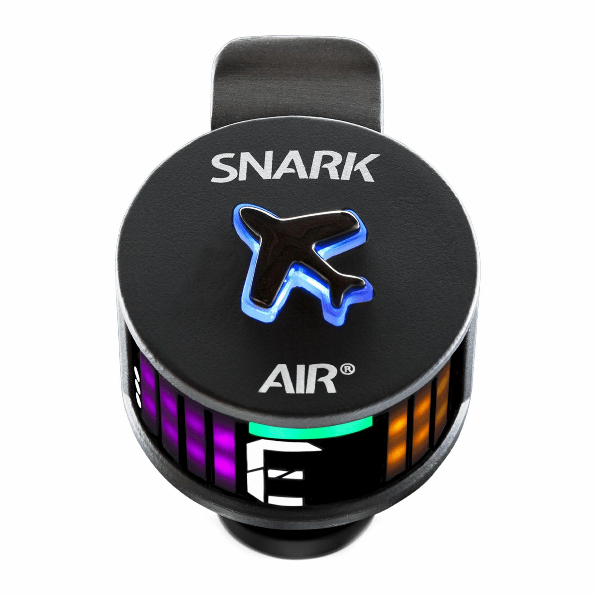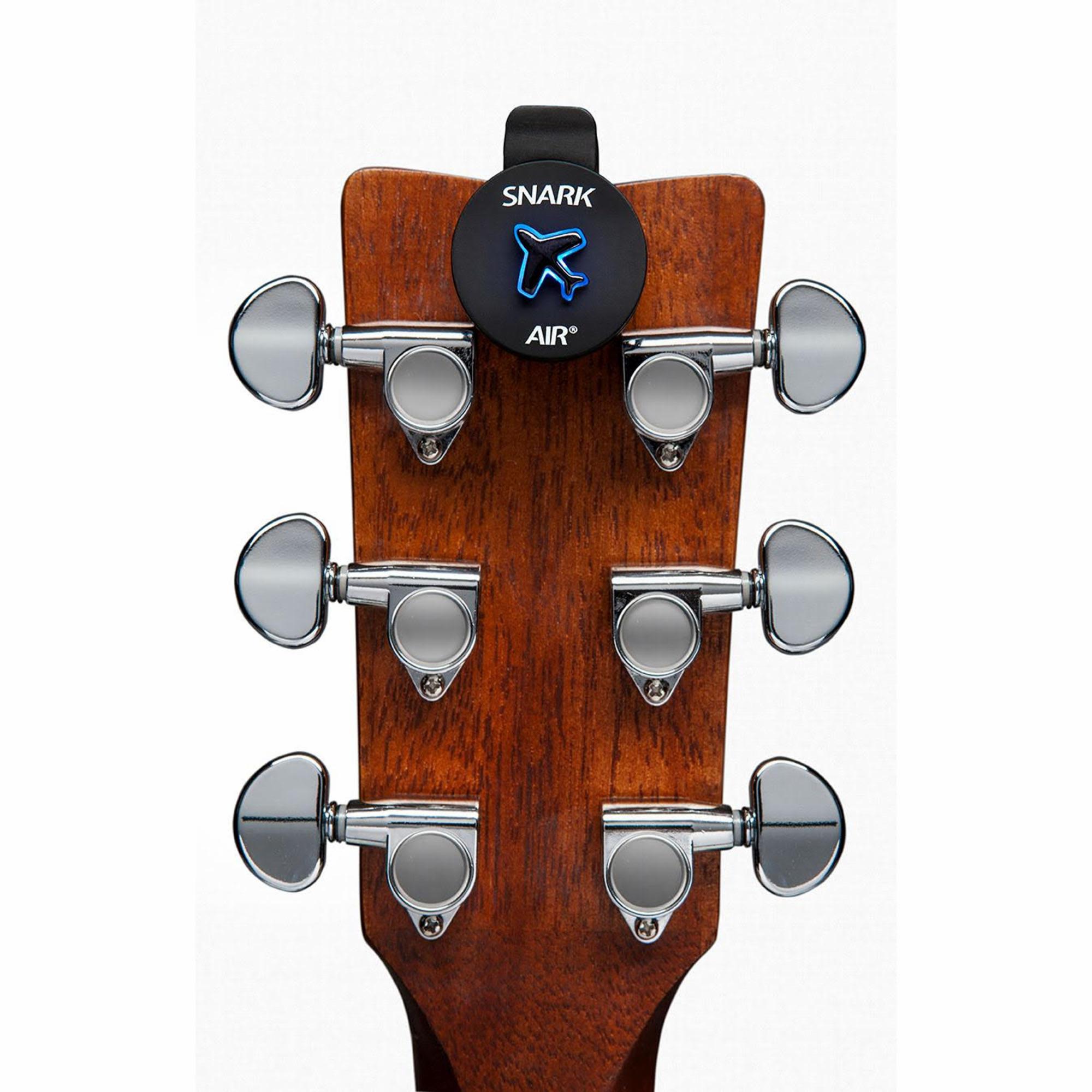 The bright, full color LED display lets you know if you’re flat (magenta), sharp (orange), or in tune (green). Reference pitch is A440Hz. No switches or buttons, just tap the plane and the ready light lets you know the Snark Air is on. Orientation of the display can be adjusted to accommodate the placement of the tuner so it’s always easy to read. Comes with a micro-USB cable for recharging; when the tuner shows three dots on the screen, it’s fully charged. Clips on to guitar, bass, ukulele, mandolin, banjo, and more.