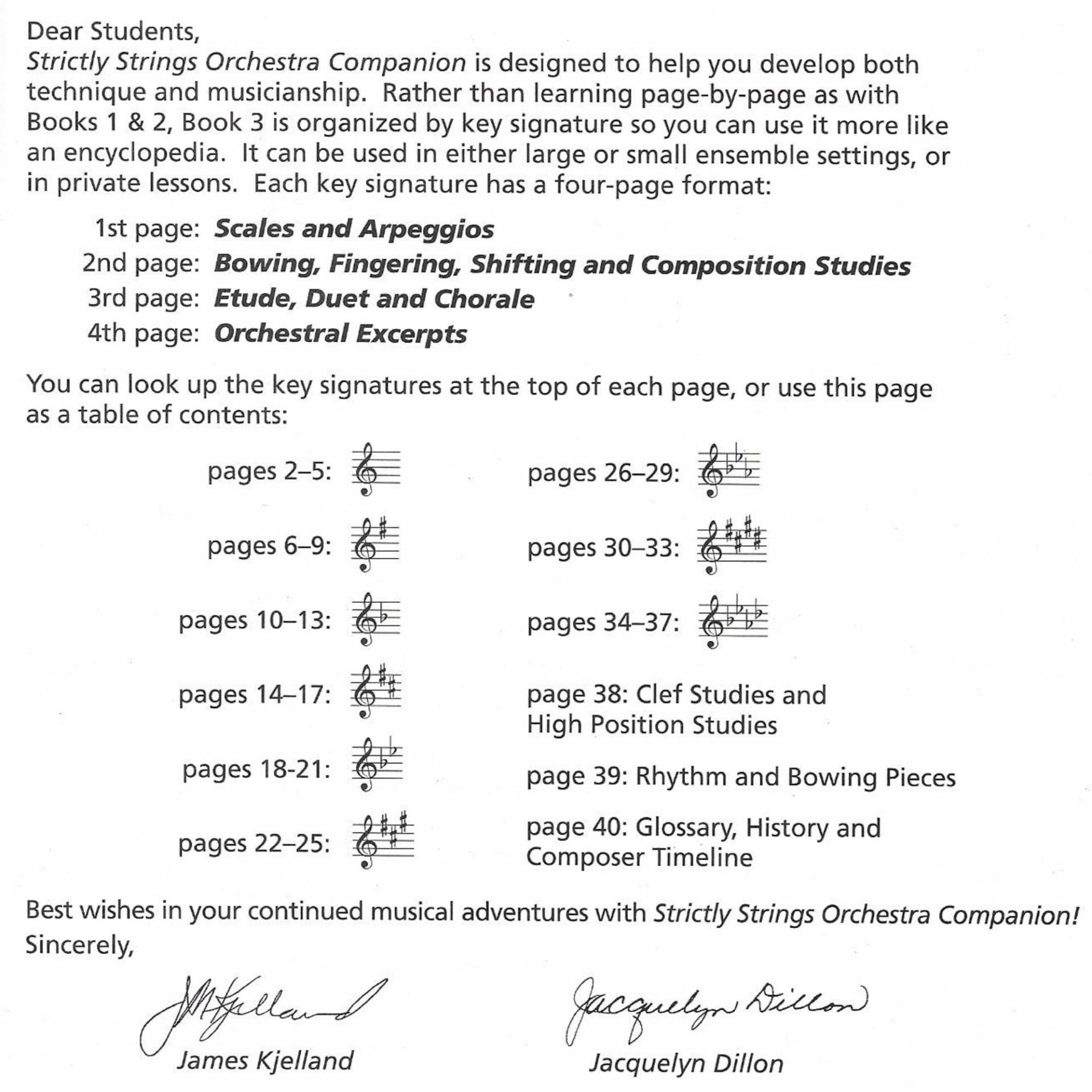 Strictly Strings, Book 3 is an all-in-one technical and musical reference book for the advanced middle school and high school orchestra. It may be used as a follow-up to Book 2 or independently as a quick-reference technique and musicianship manual. Strictly Strings, Book 3 features a host of suggested fingerings and bowings, emphasizes “real” music with over forty 2- and 3-part excerpts, and allows students to work on their own.