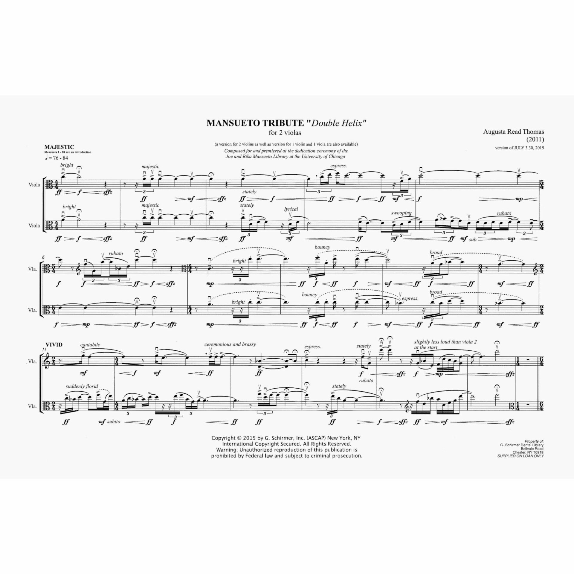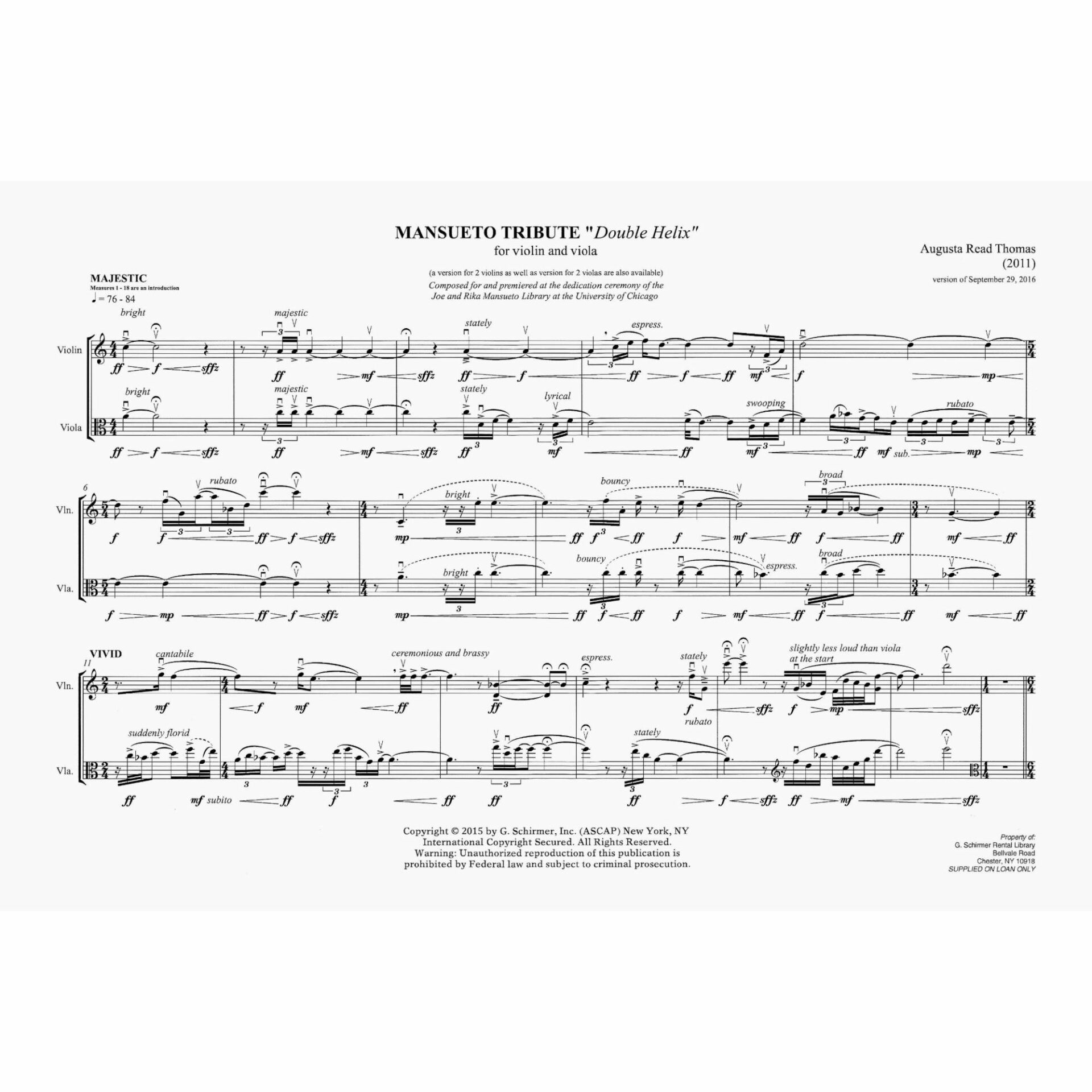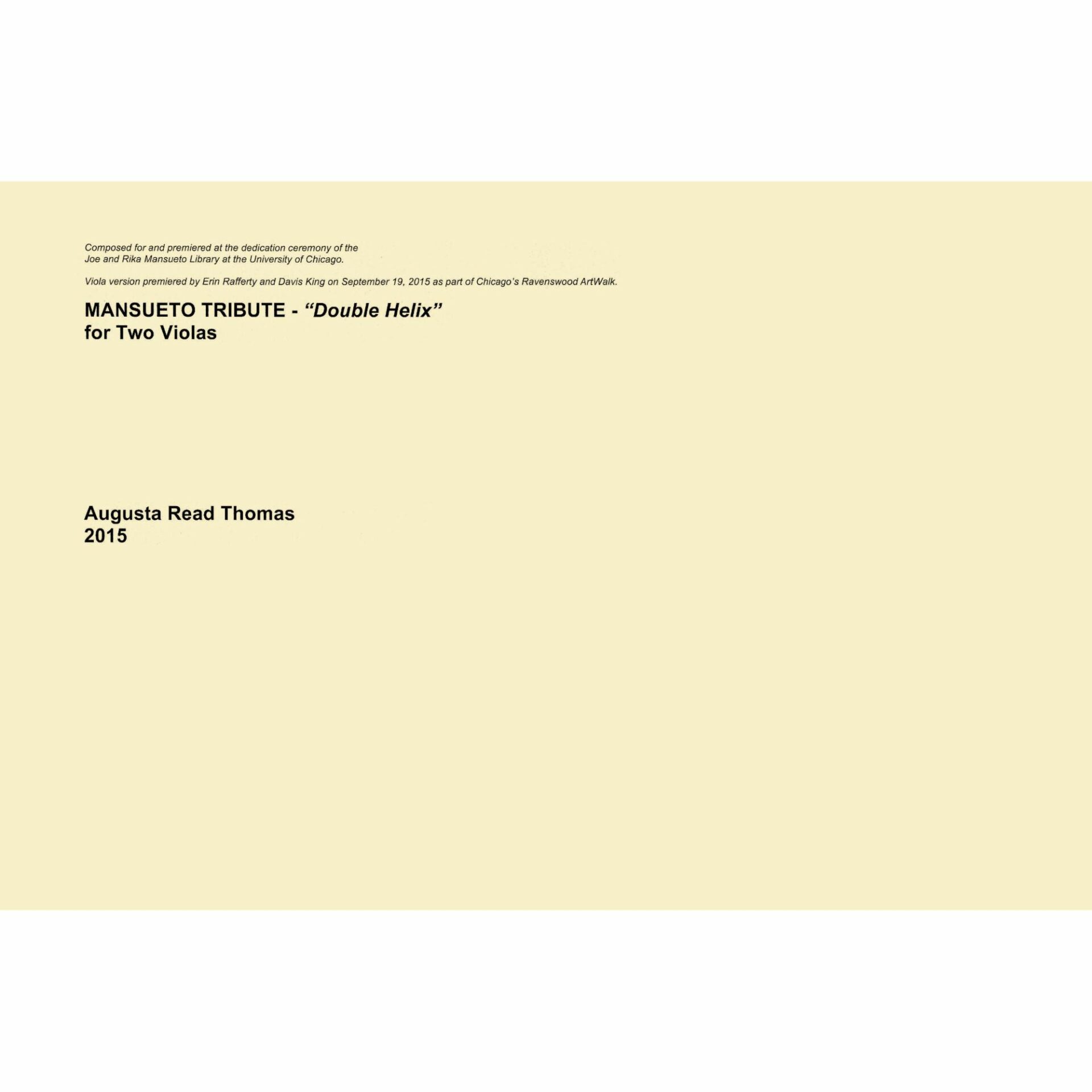 Thomas — Mansueto Tribute (Double Helix) for Two Violas or Violin and Viola