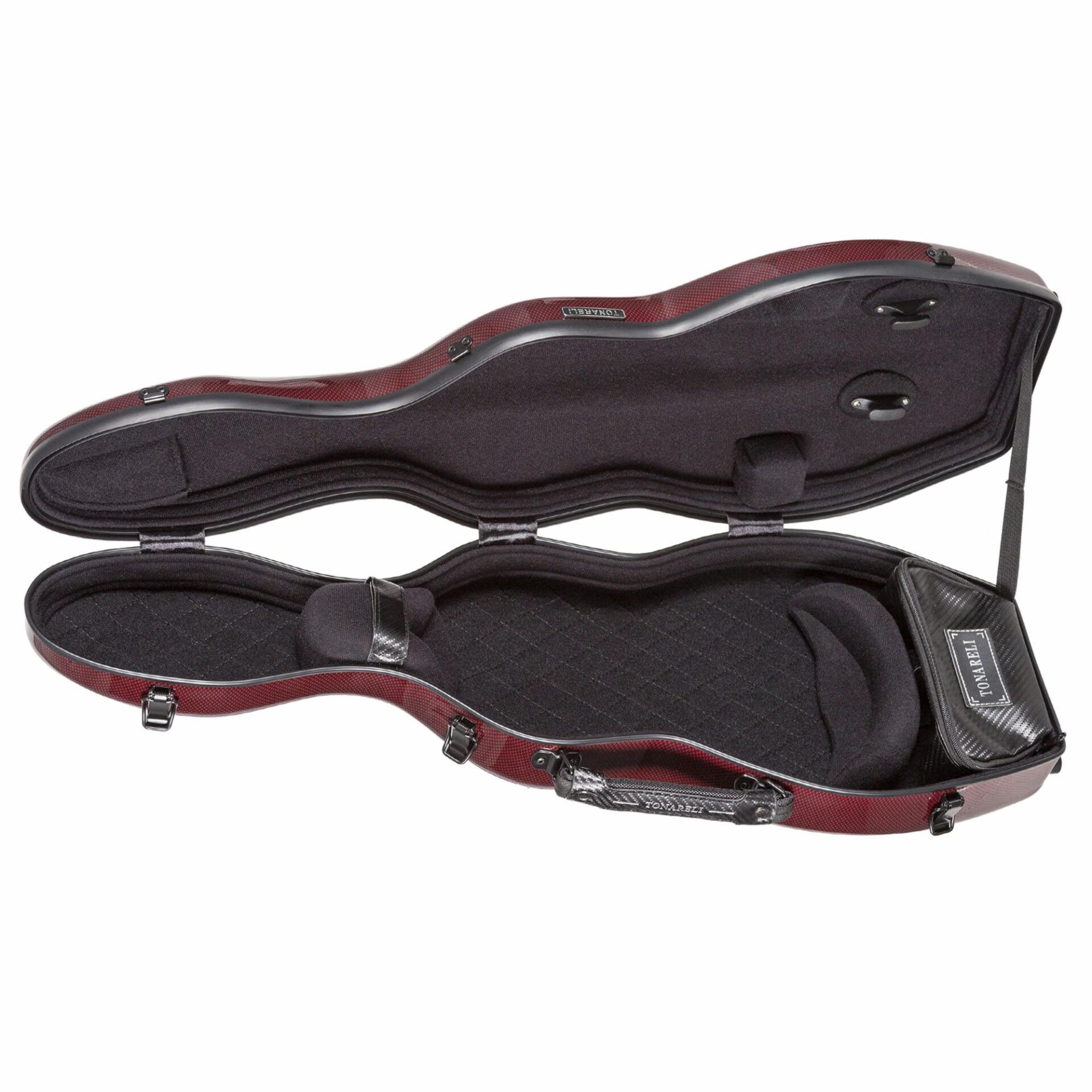 The Tonareli cello-shaped fiberglass violin cases are an affordable and stylish case to protect your prized instrument. Constructed of light weight and durable fiberglass, the case is sealed when closed so your instrument is better protected from environmental changes. The case has a new bow holder design to securely hold two bows. There is also a removable accessory compartment. Each case comes with two shoulder straps and a violin blanket.
