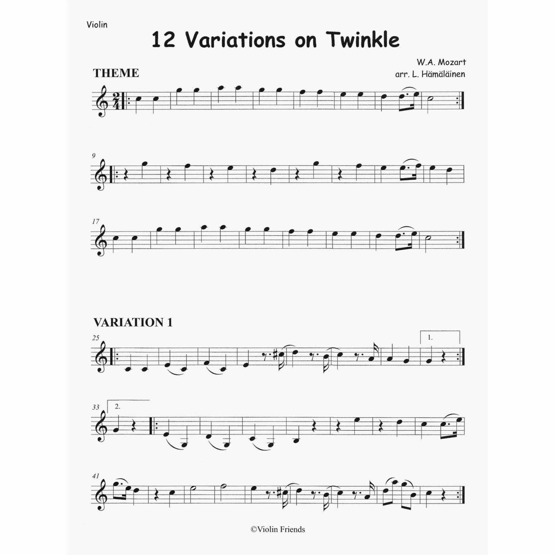Title: Violin Friends: 12 Variations of Twinkle, Twinkle, Little Star