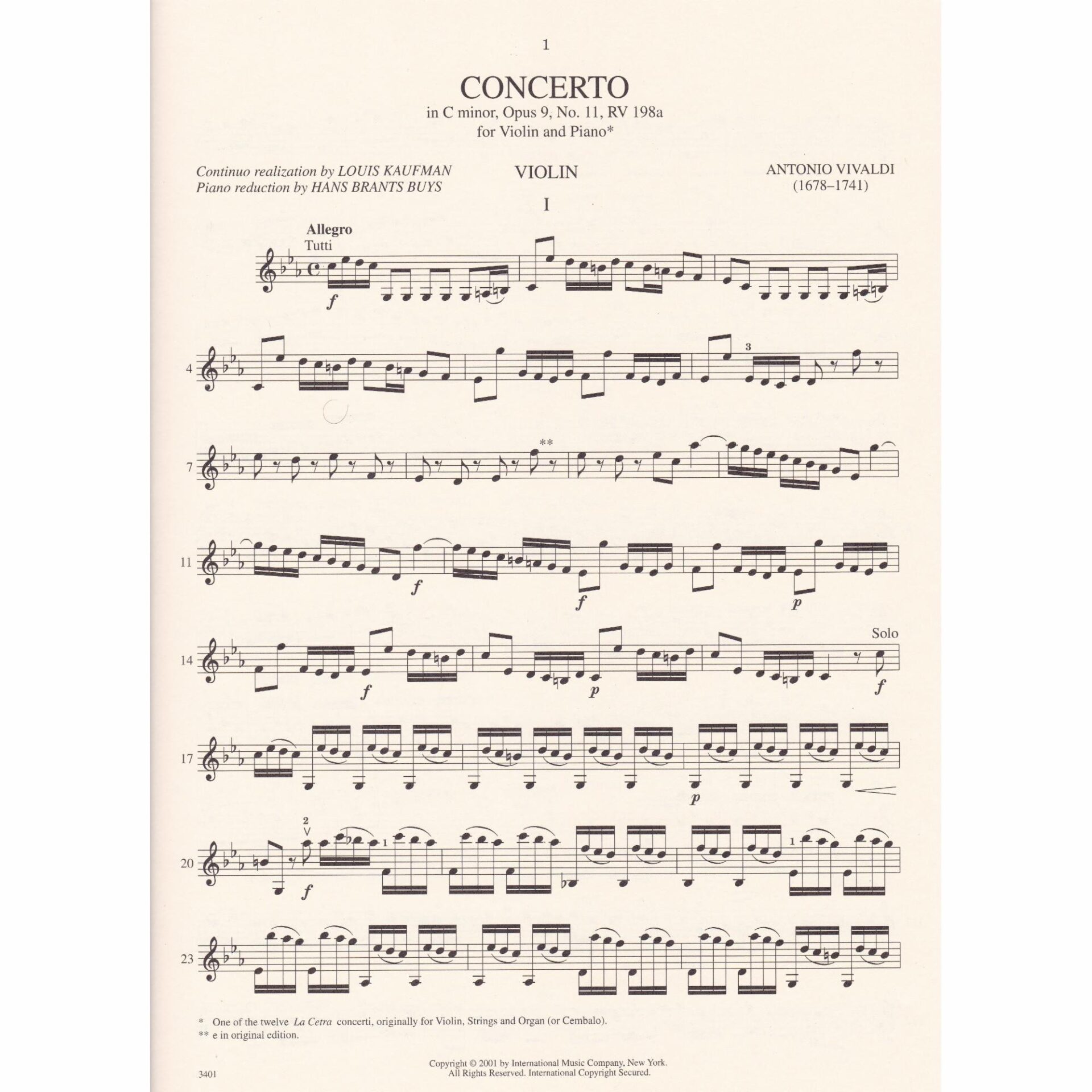Vivaldi — Concerto in C Minor, Op. 9, No. 11 for Violin and Piano