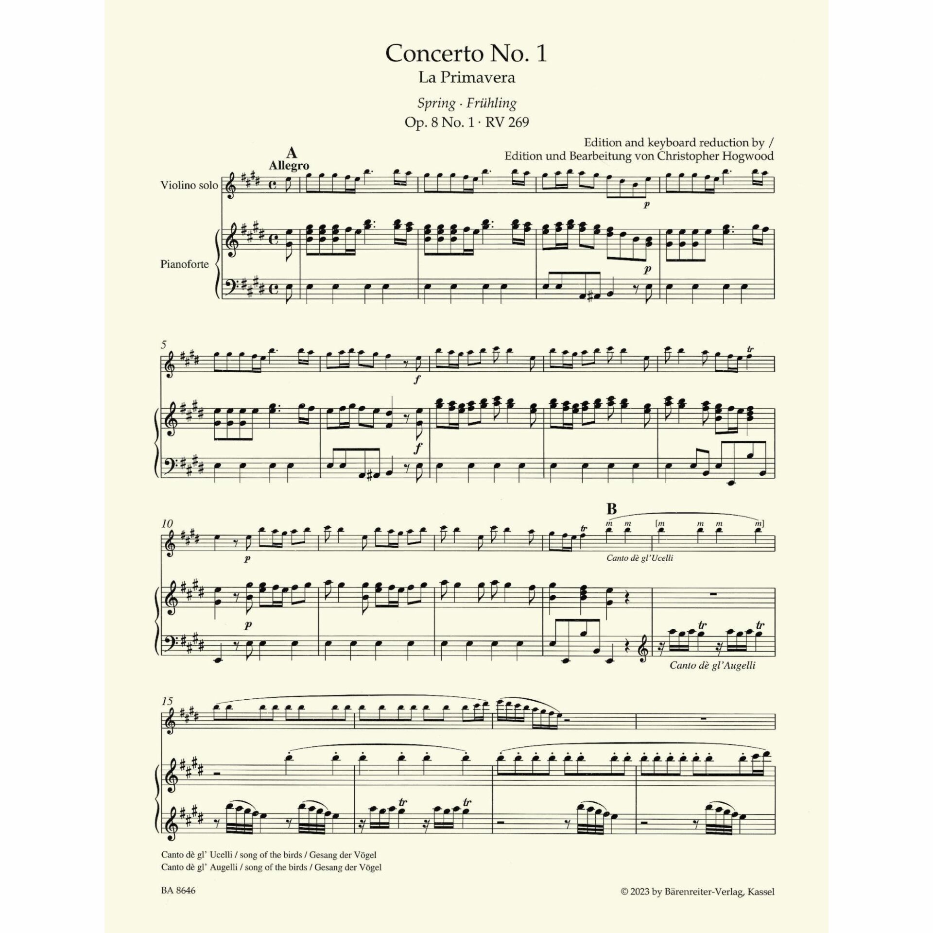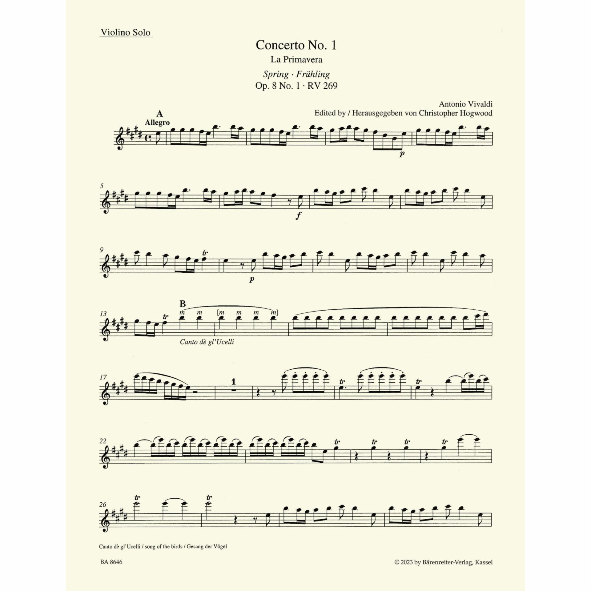 Title: Concerto in E Major, Op. 8, No. 1, “Spring” from The Four Seasons