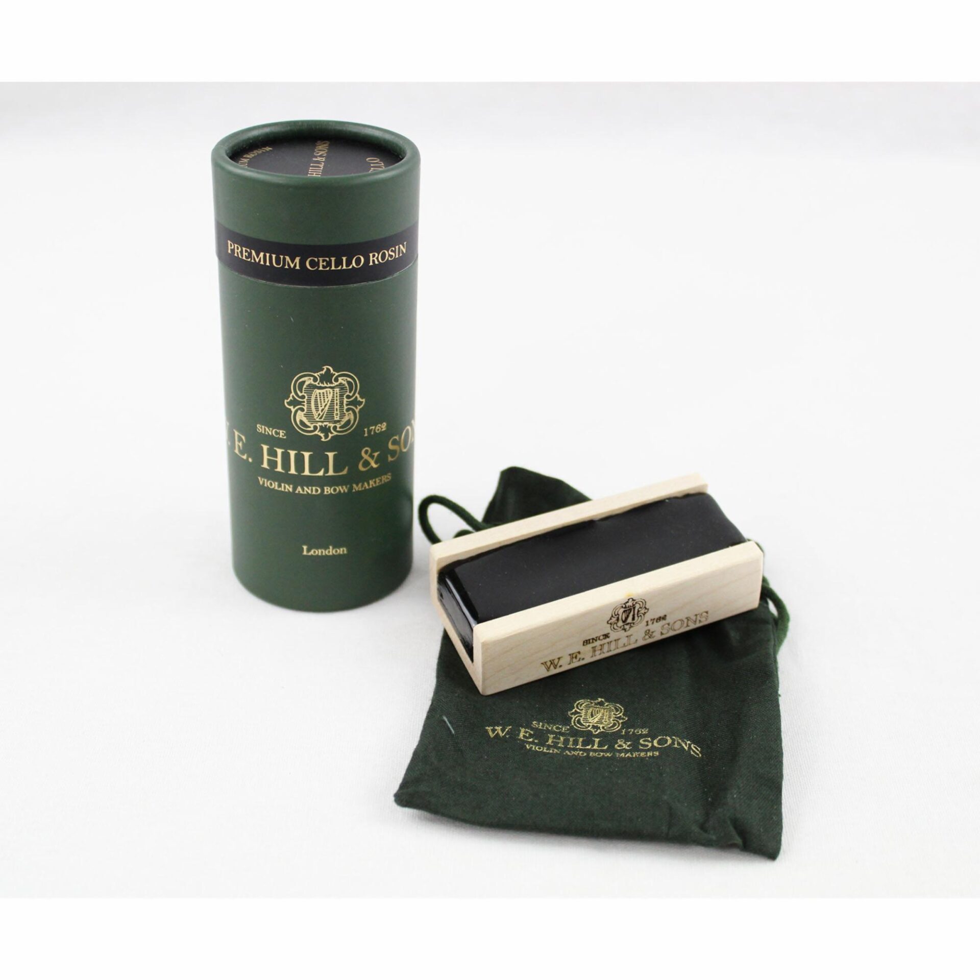Blended from a unique formulation to ensure the finest performance and developed to increase your level of instrumental control and dynamic range, each rosin is encased in a solid Maplewood holder etched with the historic W. E. Hill & Sons logo, and presented in a color-matched drawstring bag.