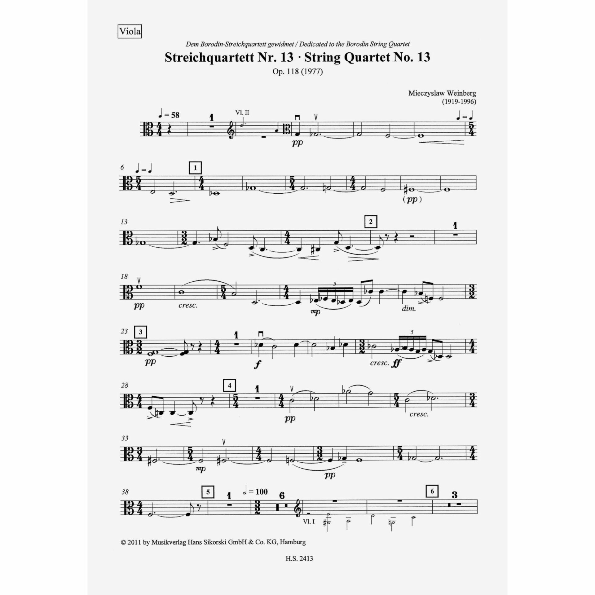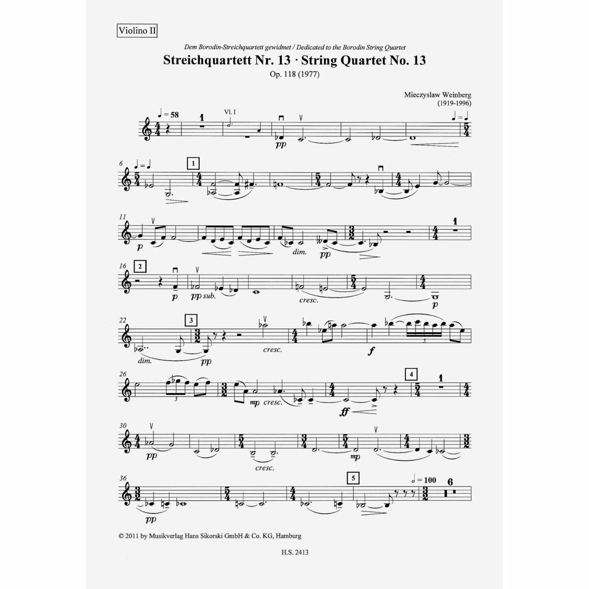 Weinberg — String Quartet No. 13, Op. 118