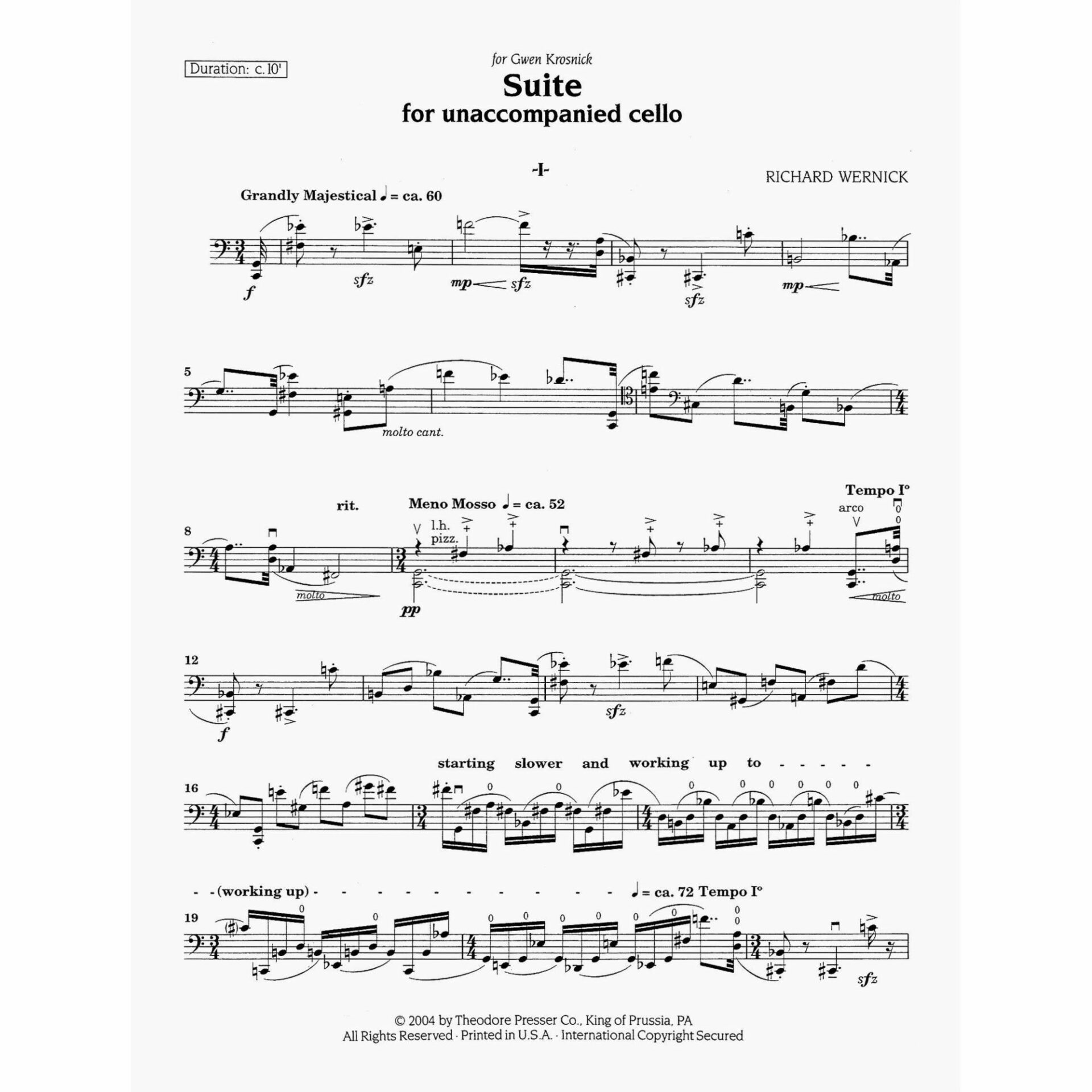 Wernick — Suite for Solo Cello